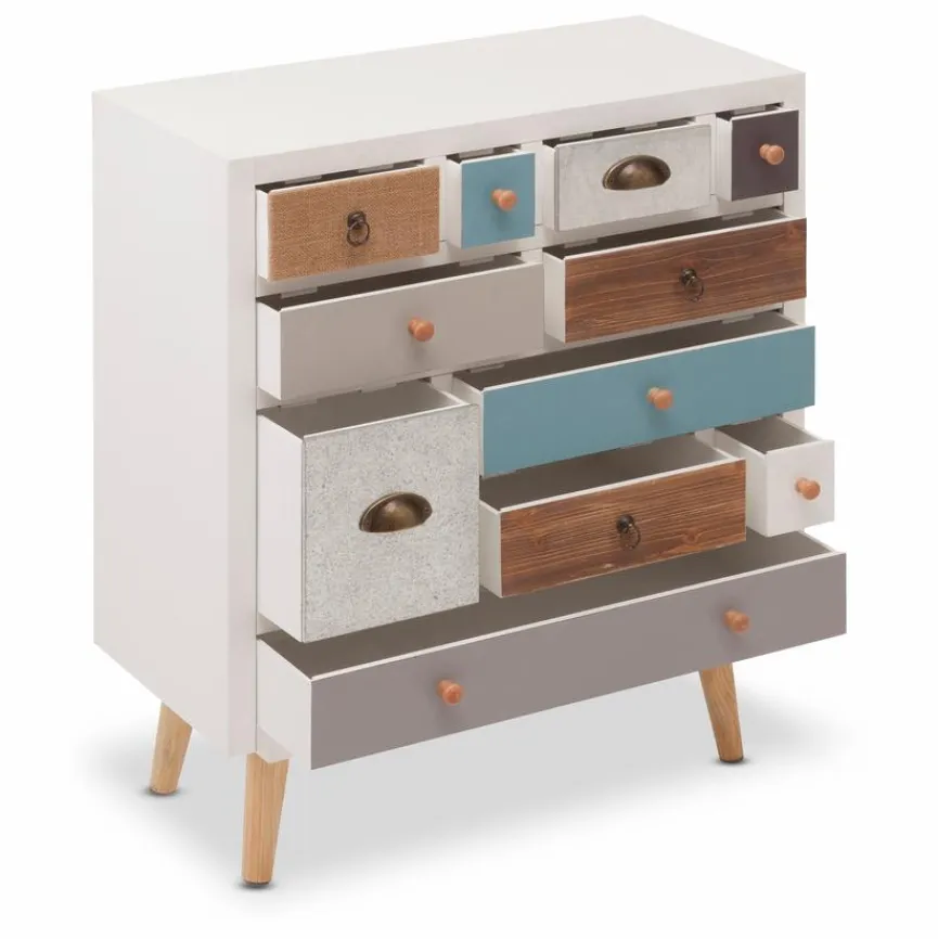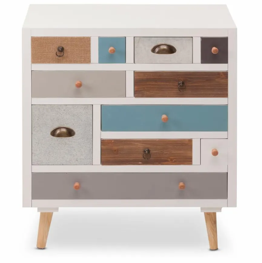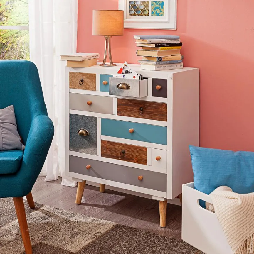 Die Kommode 11S Thais setzt mit ihrer extravaganten Optik einen optischen Akzent in Ihrer Einrichtung. Durch die bunten und verschieden großen Schubladen ist das Sideboard ein echter Hingucker. Außerdem bietet die Kommode 11S Thais auch genügend Stauraum für die geordnete Aufbewahrung von verschiedenen Gegenständen.