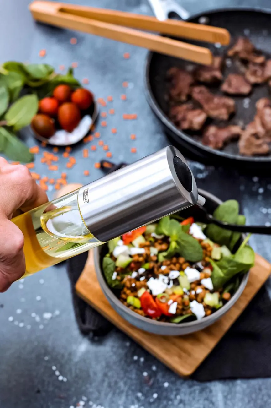 Die Essig- und Ölflasche Aroma 23,5 cm von AdHoc besticht durch sein puristisches, elegantes Design. Dank der praktischen Druckpumpe können Sie Balsamico, Sojasauce und Co. exakt dosieren, ohne etwas zu verschütten. Auch als Geschenk ist die aparte und praktische Essig- und Ölflasche Aroma 23,5 cm sehr gut geeignet.