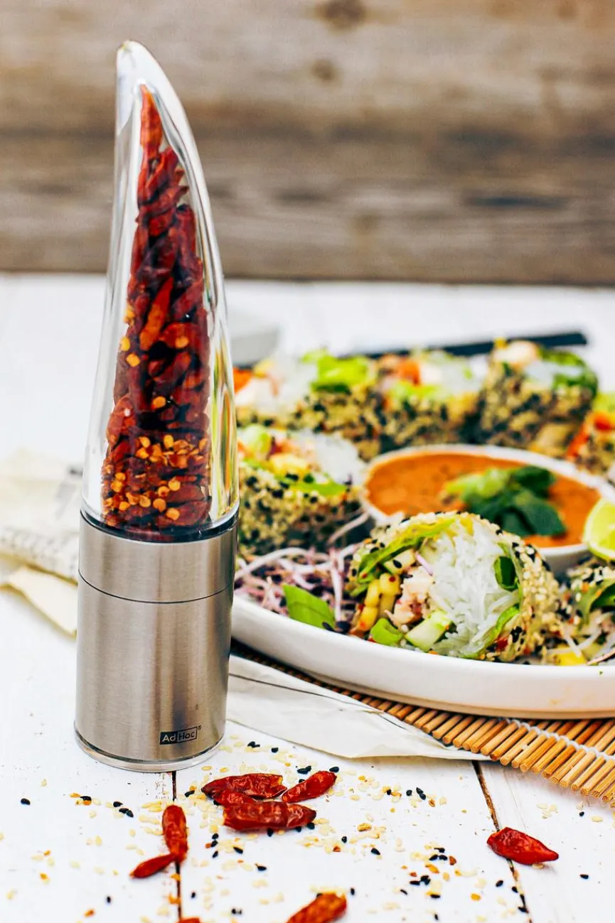 Sein originelles Design macht den Chilischneider Pepe 20,8 cm von AdHoc zu einem echten Hingucker. In dem praktischen Utensil können Sie getrocknete Chilis samt Kernen problemlos und vor allem ohne direkten Kontakt zur Haut effizient zerkleinern. Der Chilischneider Pepe 20,8 cm kann bei Bedarf aber auch für Ingwer, Anis, rosa Pfeffer, Koriander, Senfsaat oder andere Gewürze genutzt werden.