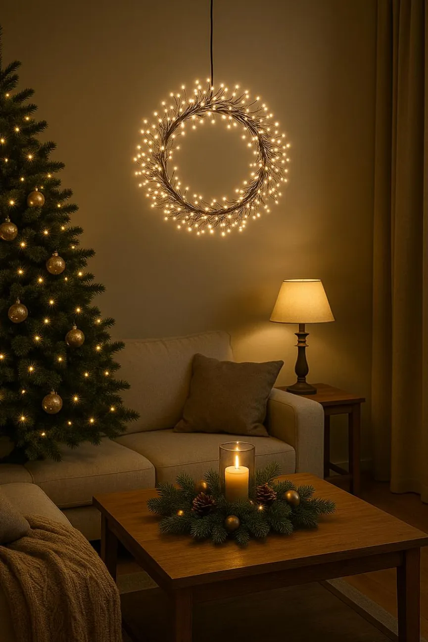 Die Deko-Leuchte Kranz Ø 45 cm von AM Design schafft mit ihrem sanften Licht eine warme Atmosphäre in jedem Raum. Durch das harmonische Zusammenspiel von Form und Leuchtkraft setzt die Deko-Leuchte Kranz Ø 45 cm stilvolle Akzente. Sie verbindet dekorative Eleganz mit moderner Lichtwirkung und sorgt für eine besonders behagliche Stimmung.