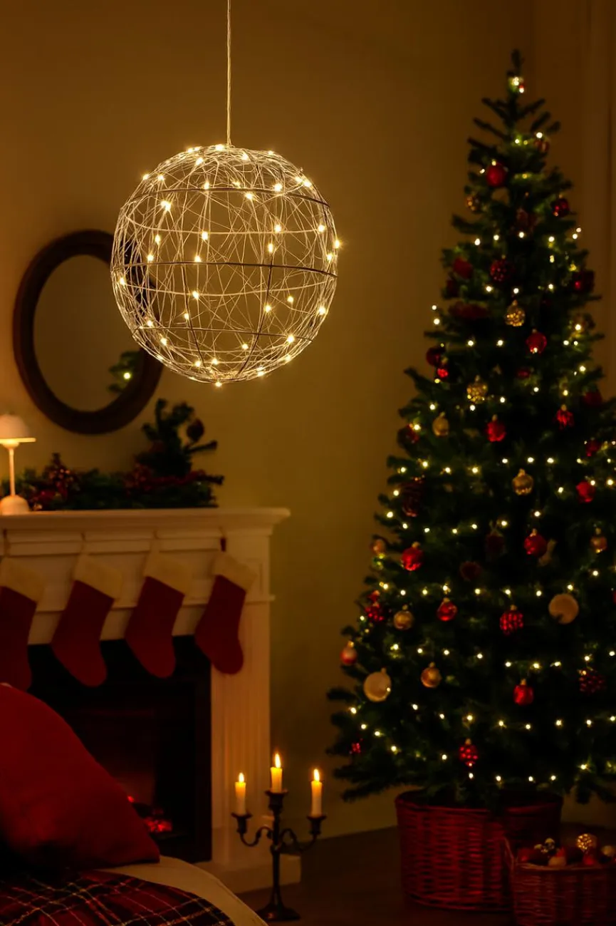 Die Dekoleuchte Drahtkugel von AM Design setzt mit ihrer filigranen Kugelform dekorative Lichtakzente in jedem Raum. Durch das kunstvoll verflochtene Drahtgeflecht entsteht ein spannendes Spiel aus Licht und Schatten. Die Dekoleuchte Drahtkugel eignet sich ideal zur indirekten Beleuchtung und schafft ein gemütliches Ambiente auf Tisch, Sideboard oder Fensterbank. Ob einzeln platziert oder in Kombination – sie sorgt für eine stilvolle Atmosphäre.