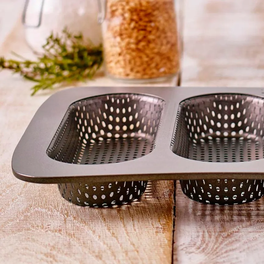Wer seine Weißbrote gerne selbst fertigt, ist mit dem Backblech Baguette bestens bedient. Neben Ihren Backkünsten tragen die Perforationen im Metall erheblich für ein perfektes Ergebnis bei. Dank der Vertiefungen bleiben Ihre Brote wunderbar in Form. Nach dem Backvorgang im Ofen können Ihre Köstlichkeiten direkt auf dem Backblech Baguette auskühlen.
