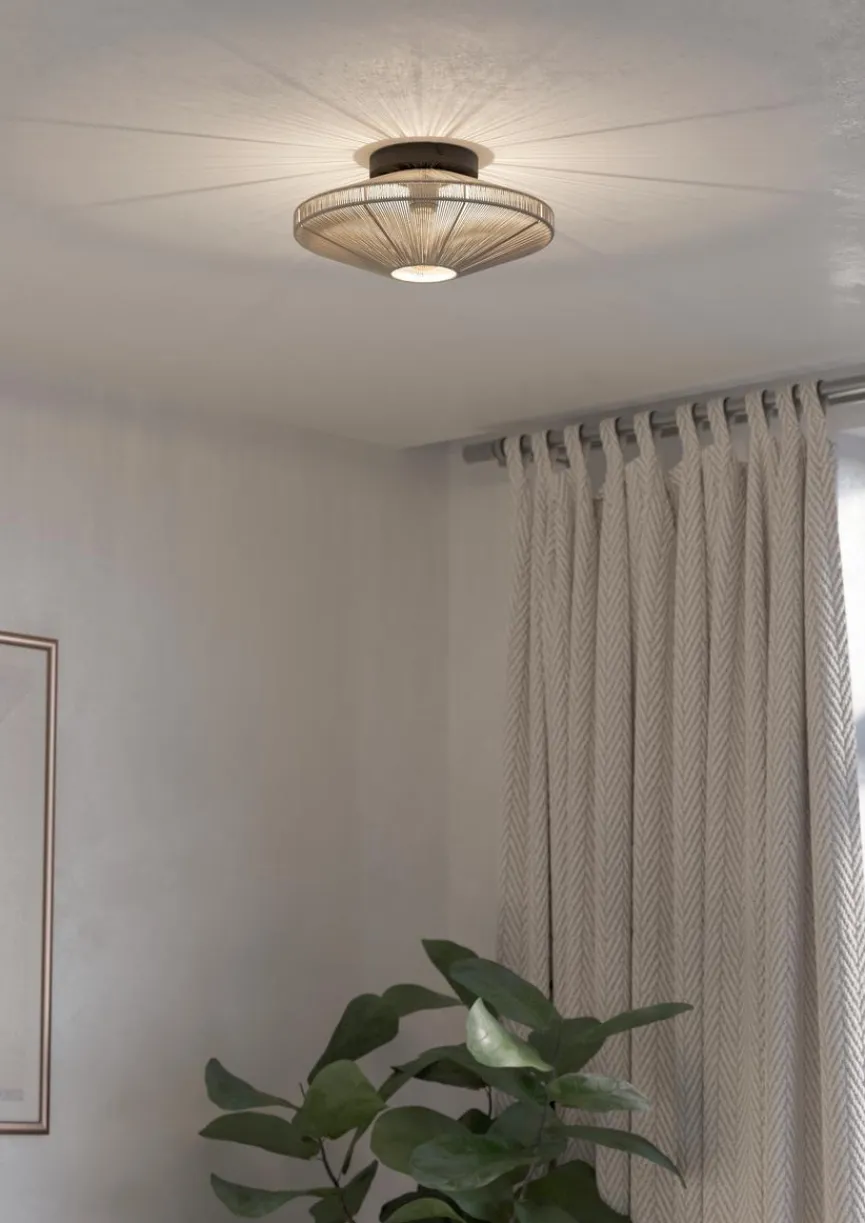 Folgen Sie mit der Deckenleuchte Midsumer von EGLO dem Megatrend Japandi Style, der skandinavisches Design mit japanischem Minimalismus verschmelzen lässt. Unter dem dunklen Lampenbaldachin dieser Deckenlampe schwebt der aus einzelnen Naturgarn-Fäden gewickelte helle Lampenschirm, durch den sich das Licht bricht und angenehm den Raum flutet. In der stilvoll reduzierten Deckenleuchte Midsumer gelingt die moderne Interpretation des Spiels von Licht und Schatten.