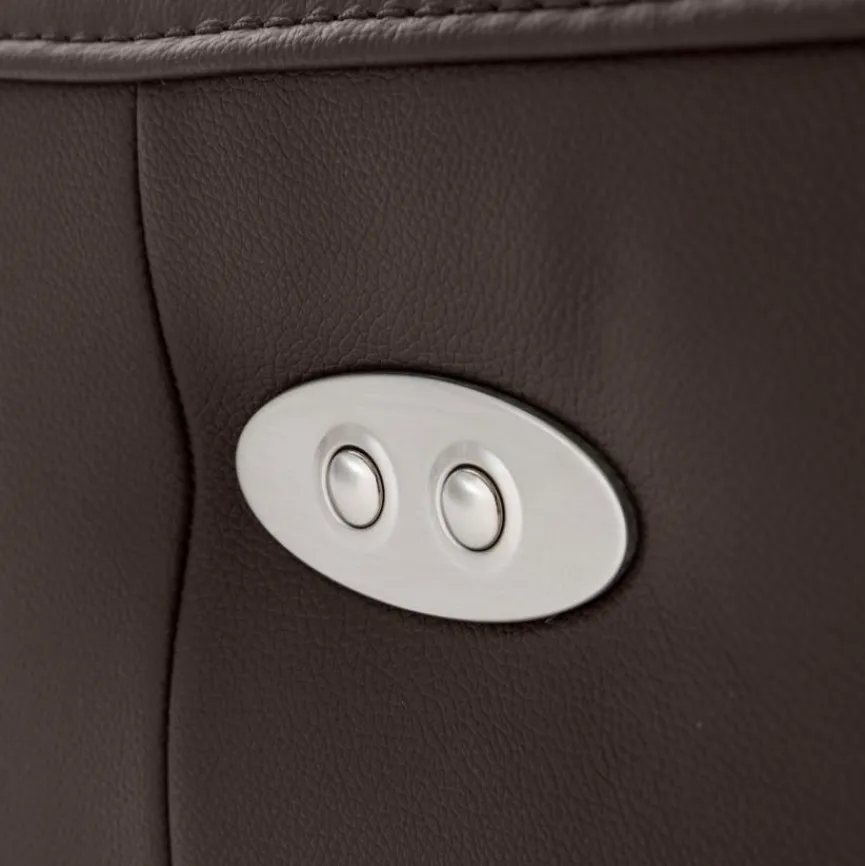 - Sitzbezug aus Leder (Madras) in dunkelbraun, Korpusbezug aus Lederoptik (Madras) in dunkelbraun, Füße Metall verchromt