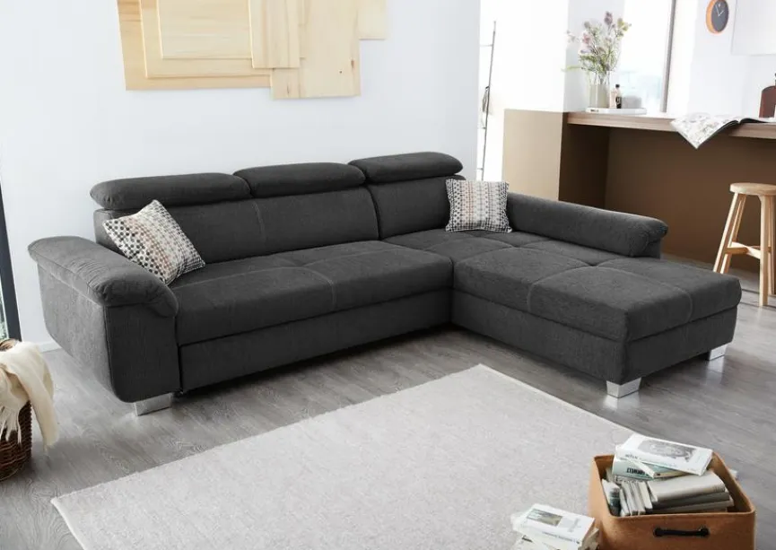 - Ecksofa besteht aus 2-Sitzer mit Armlehne und Longchair mit Armlehne, beidseitig montierbar