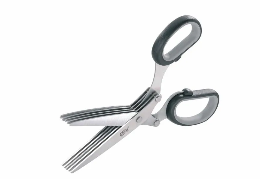 Die Kräuterschere Cutare von GEFU ist das Universalwerkzeug für Kräuterhexen, Hausfrauen und Hausmänner, die auf praktische und effektive Weise frische Kräuter zerkleinern wollen. Das Küchenaccessoire ist ideal mit dem beiliegenden Reinigungskamm von Kräuterresten zu befreien. Außerdem kann die Kräuterschere Cutare aus dem Hause GEFU auch leicht unter fließendem Wasser gereinigt werden.