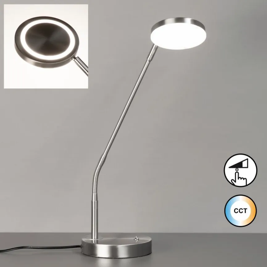 Die LED-Tischleuchte Sorento von Fischer & Honsel vereint klassische Designelemente zu einem Look, der durch seine metallisch glänzende Oberfläche besticht. Das runde Leuchtelement dieser LED-Tischlampe korrespondiert harmonisch mit der Gestaltung des Lampenfußes und besitzt einen flexiblen Arm, mit dem die LED-Tischleuchte Sorento individuell und punktgenau ausgerichtet werden kann. So fließt ihr Licht dorthin, wo es gewünscht wird, und passt perfekt zur Leseecke oder der Nachtkonsole.