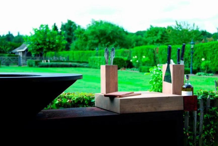 - Mit Zubehörhalter und Lagerplatz für Holz