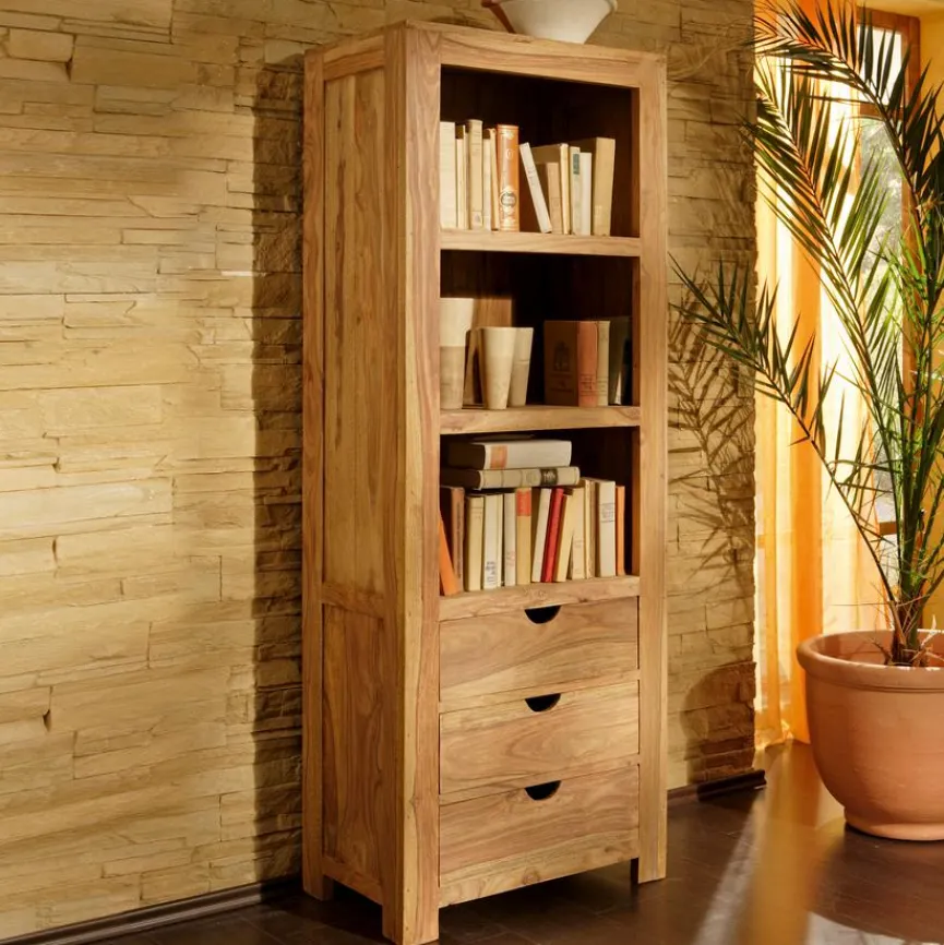 Das Regal Yoga sieht nicht nur gut aus, sondern überzeugt auch durch eine hohe Funktionalität. Mit seiner massiven Bauweise und der Verwendung von Sheeshamholz erhält das Wandregal eine Optik mit rustikalem Charme. In mehreren Fächern bietet das Regal Yoga genügend Stauraum für verschiedene Gegenstände.
