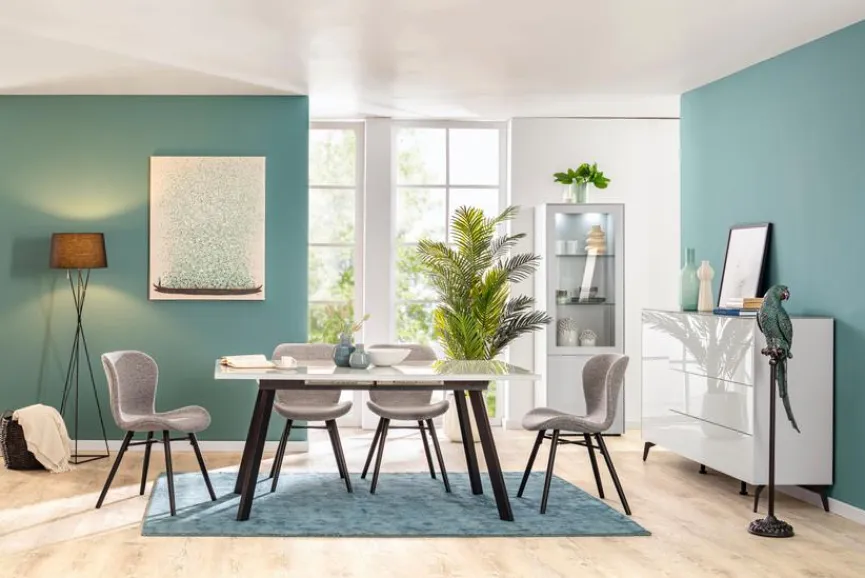 - Aus Holzwerkstoff (Spanplatte) mit kratzfester Melaminharzfolie in kreidegrau