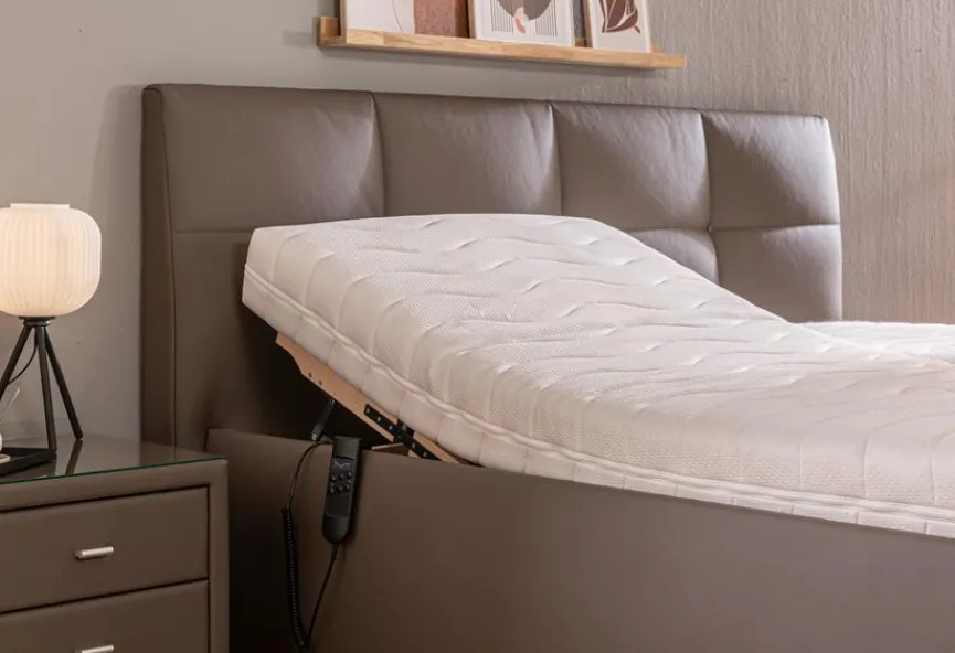 - Mit 2x Lattenroste 90 x 200 cm, stufenlose motorische Kopf- und Fußteilverstellung, mit Bettkastenfunktion