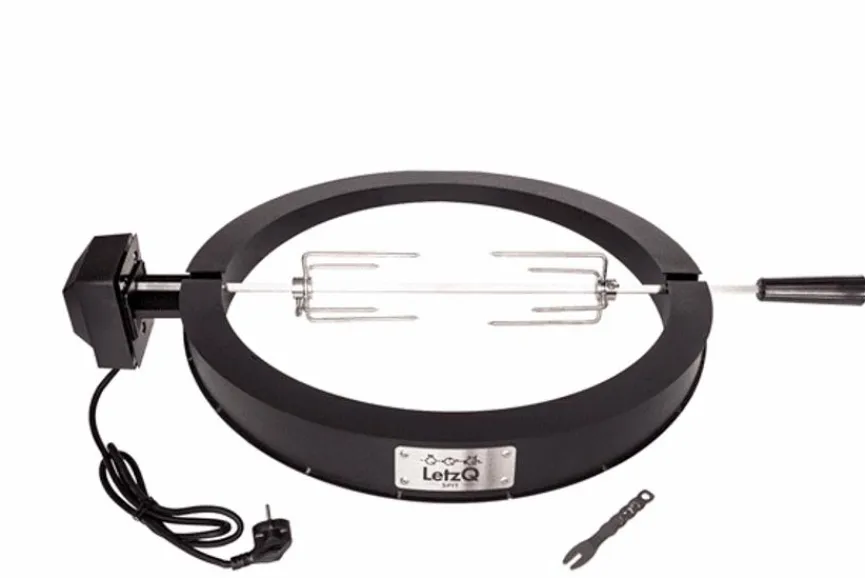 - Besteht aus Ringeinsatz, 220-240 Volt Motor einschl. Kabel, Edelstahl-Drehspieß, 2 verstellbare Spießklammern Edelstahl, Spezialschlüssel