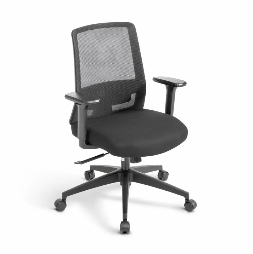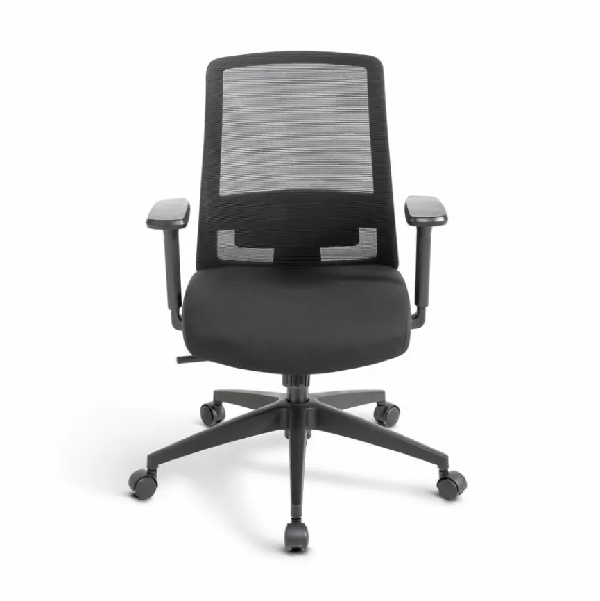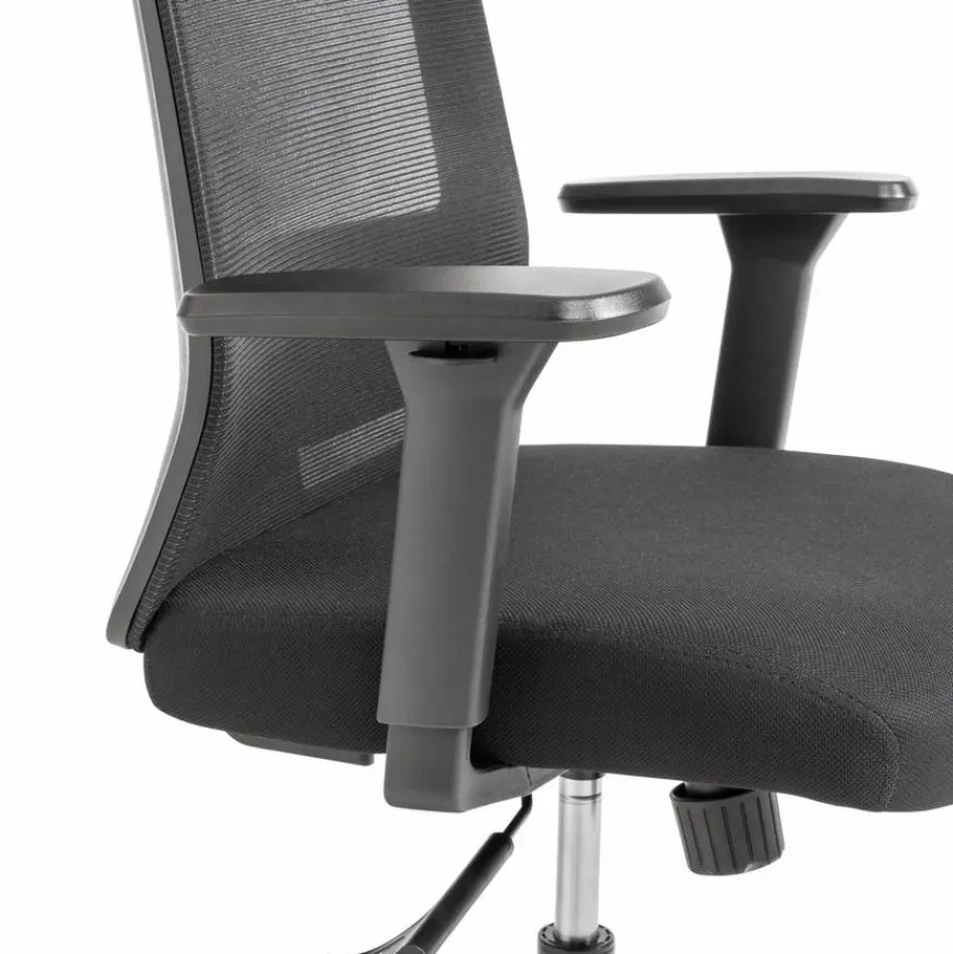 - Sitzbezug aus Stoff in Schwarz, Rückenbezug aus Mesh in Schwarz