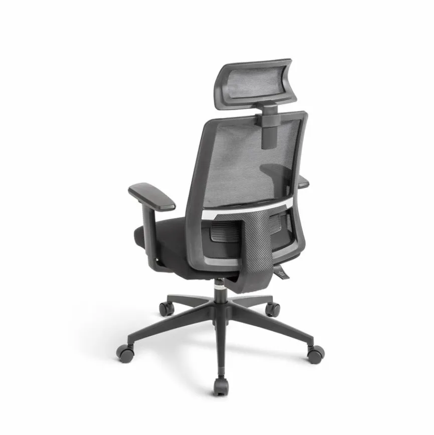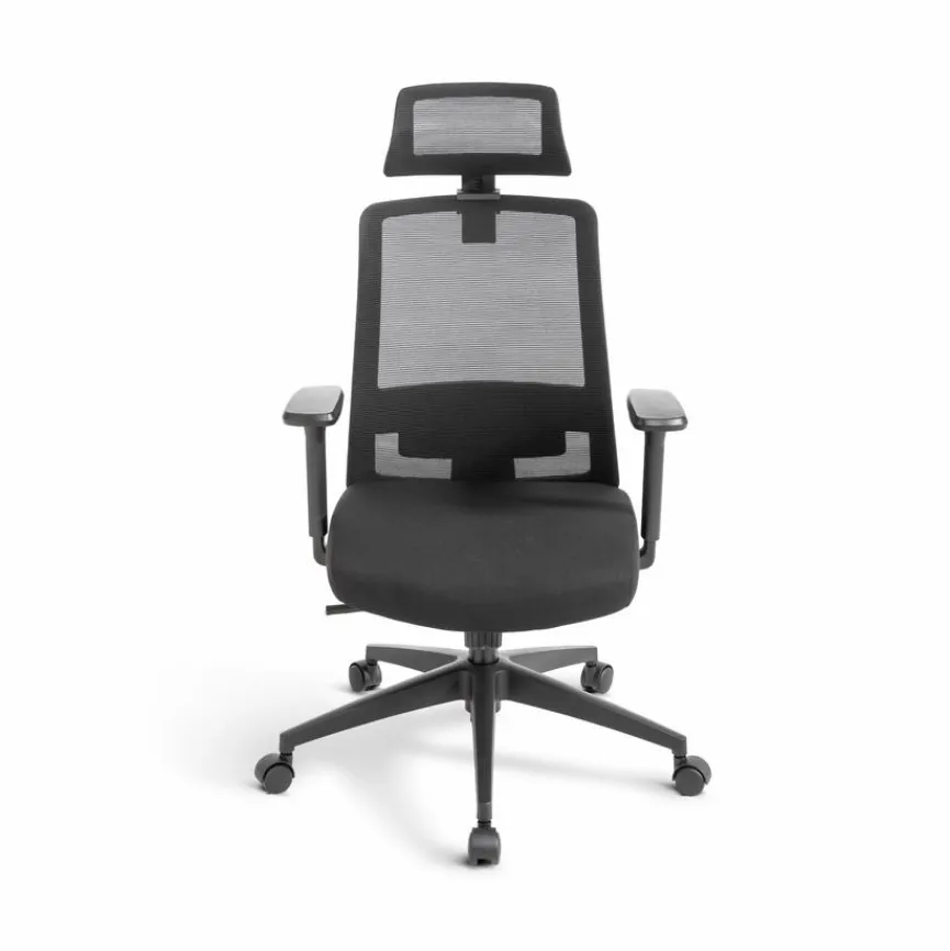 - Mit höhenverstellbarer Kopfstütze, 3D-Armlehnen und Synchron-Verstellung