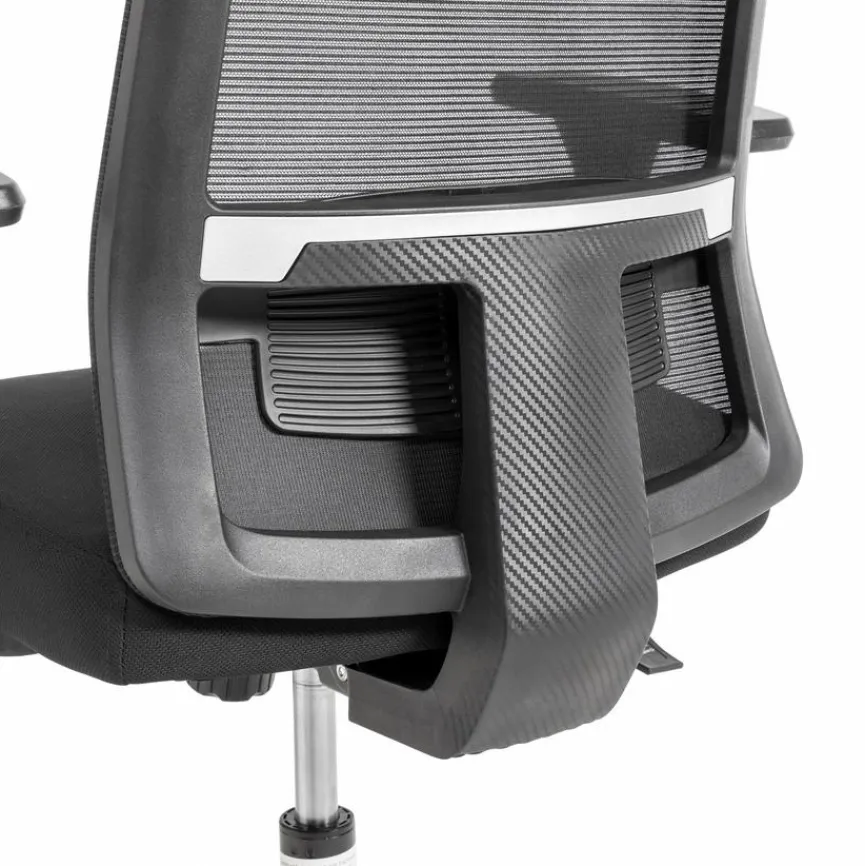 - Sitzbezug aus Stoff in Schwarz, Rückenbezug aus Mesh in Schwarz
