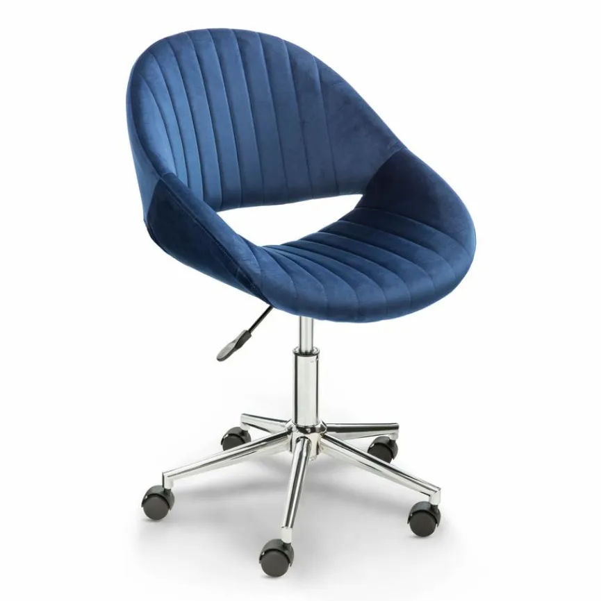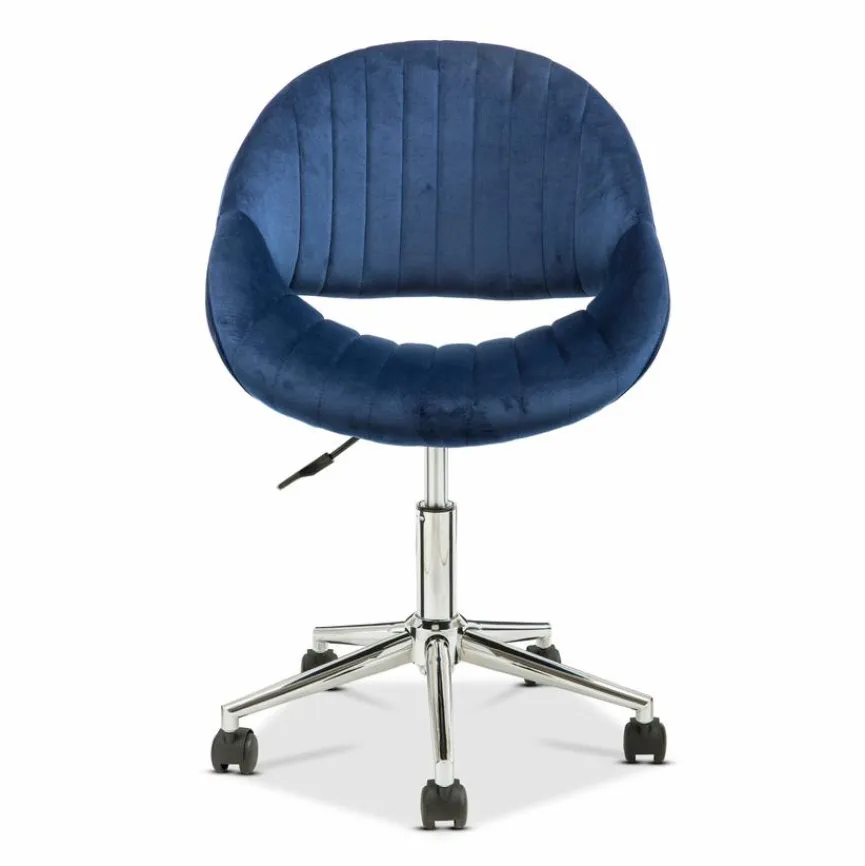 - Bezug aus Samtstoff in dunkelblau, Fußkreuz aus verchromtem Metall