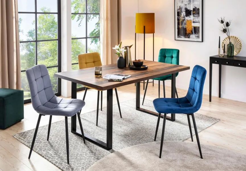 Ob im Esszimmer oder im Home-Office, der Stuhl Konya aus dem Hause BOOOM bietet überall eine komfortable Sitzgelegenheit. Darüber hinaus begeistert das Modell mit seiner edlen Optik. Der samtige Bezug mit attraktiver Steppung macht den Stuhl Konya zum Hingucker, der zum Beispiel ideal zu Vintage-Möbeln passt.
