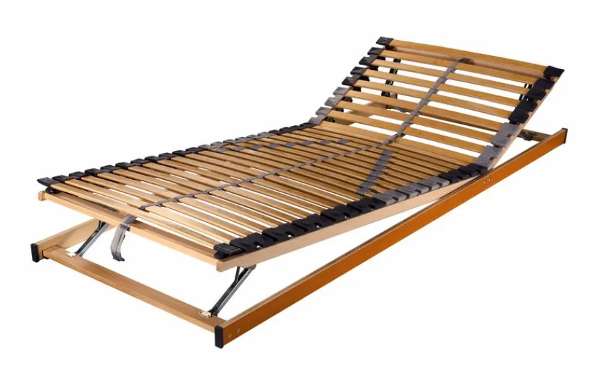 - Mit 30 mehrfach verleimten Federholzleisten, aufliegend – Kopf- und Fußteil verstellbar