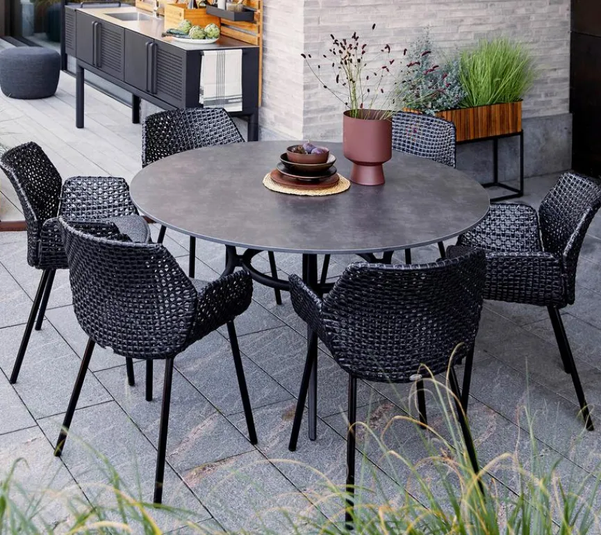 Cane-line Weave® ist eine Faser aus durchgefärbtem und strapazierfähigem Polyethylen (PE), das wie geschaffen für den Einsatz im Freien ist, weil es wasserbeständig ist und große Temperaturunterschiede verträgt. Sowohl die Struktur als auch die Flechtmethode sorgen für Elastizität und optimalen Sitzkomfort. Das Material ist UV-beständig, verschleißfest und sehr pflegeleicht. Cane-line Weave® ist geschaffen für Wetterbedingungen in der ganzen Welt und behält über viele Jahre Farbe und Form. Alle Produkte sind aus handgeflochten der Cane-line Weave Faser aus, deren Farbton leicht variiert, welches die Oberfläche des Produkts angenehm auflockert. Auf diese Weise erhält das Produkt ein einzigartiges, natürliches und exklusives Aussehen.