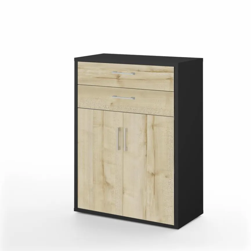 - Mit 2 Türen, 2 Schubkästen und 2 festen Einlegeböden