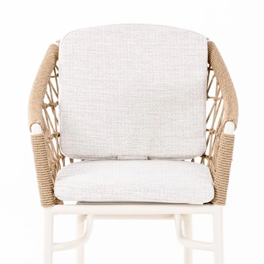 Lassen Sie mit dem bezaubernden Barhocker Mykonos von Segarda komfortable Lässigkeit und den warmen Look mediterranen Flairs bei sich einziehen. Seine umlaufenden Armstützen machen diesen Barstuhl zu einem überaus bequemen Sitzmöbel, dessen Korpus und Lehne aus einem faszinierenden Geflecht kunstvoll geknüpfter Bänder bestehen. Weiche Sitz- und Rückenkissen garantieren auch bei ausgedehnten Treffen ein gemütliches Beisammensein und machen den Barhocker Mykonos zum begehrten Lieblingsplatz.