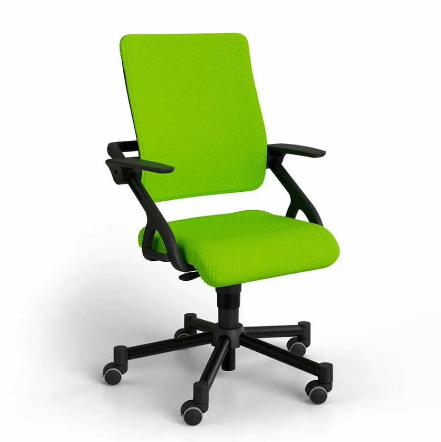 - Bezug aus Stoff in limette, Gestell/Fußkreuz aus Kunststoff in schwarz, Armlehnen aus Kunststoff in schwarz