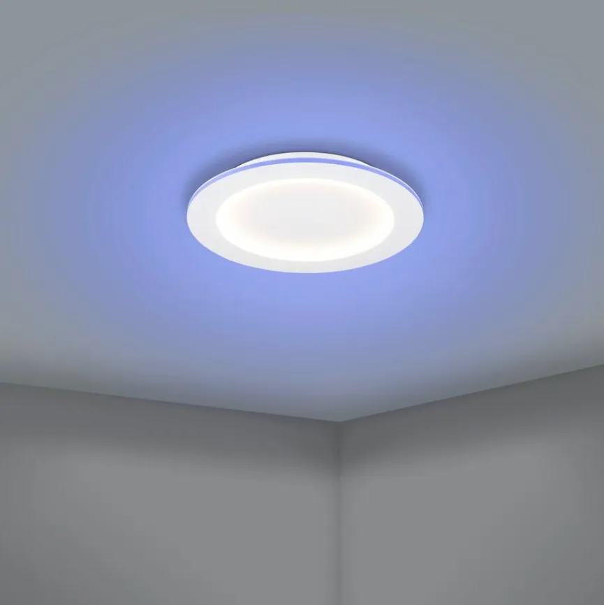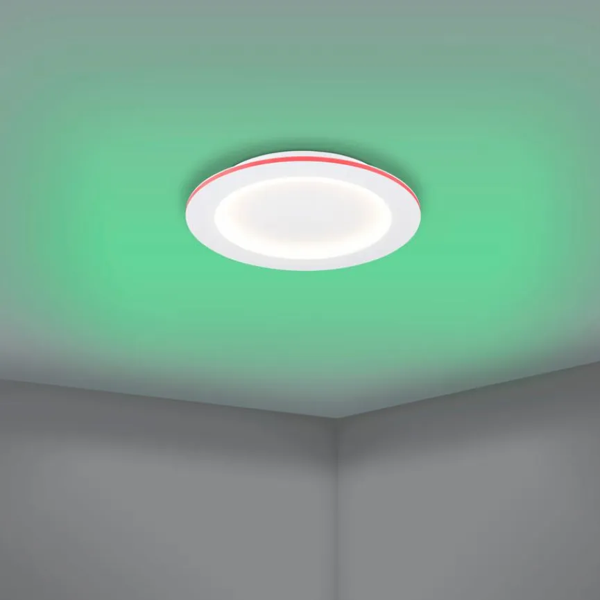 - Einstellen der Lichtfarbe (2.700 – 6.500 Kelvin), Farbwechsel (RGB) und Dimmbarkeit mit Fernbedienung (separat unter Art-Nr. 3750429 bestellbar) oder mit kostenloser AwoX home Control App über das WLAN