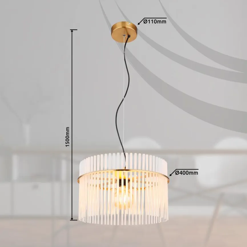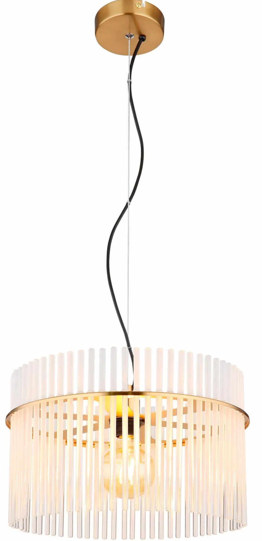 Die Pendelleuchte Gorley von Globo besticht durch außergewöhnliches Design, das Elemente des Art Déco modern interpretiert. Elegant angeordnete, zarte Glasstäbe brechen die Lichtstrahlen und kreieren bei dieser edlen Pendellampe ein faszinierendes Spiel aus Licht und Schatten. Durch die Kombination mit einem Korpus aus mattem, goldfarbenen Metall avanciert die Pendelleuchte Gorley zu einem exklusiven Style-Highlight, das Ihrem Ambiente einen luxuriösen Touch verleiht.