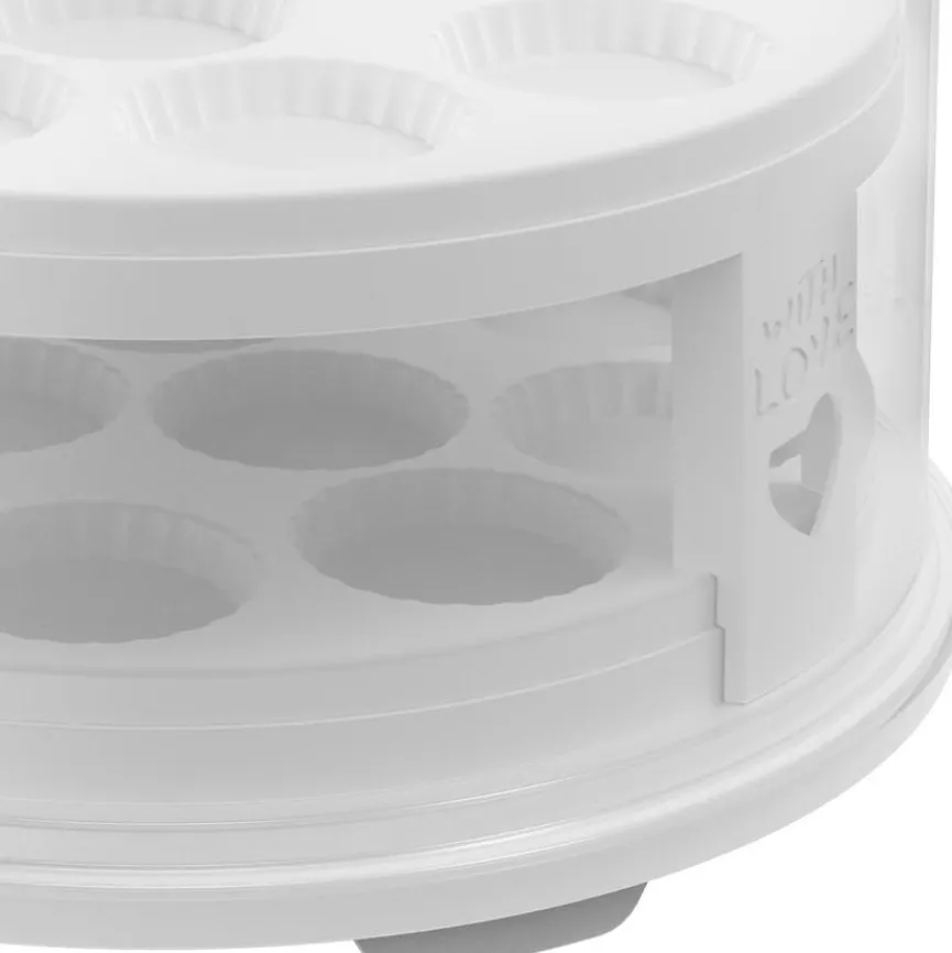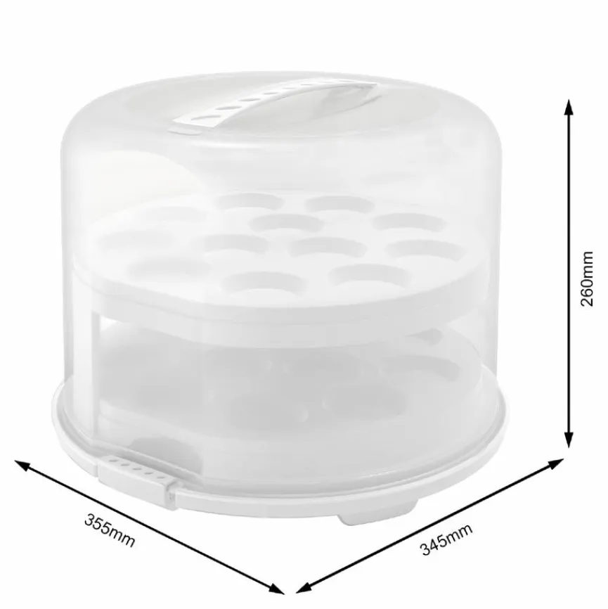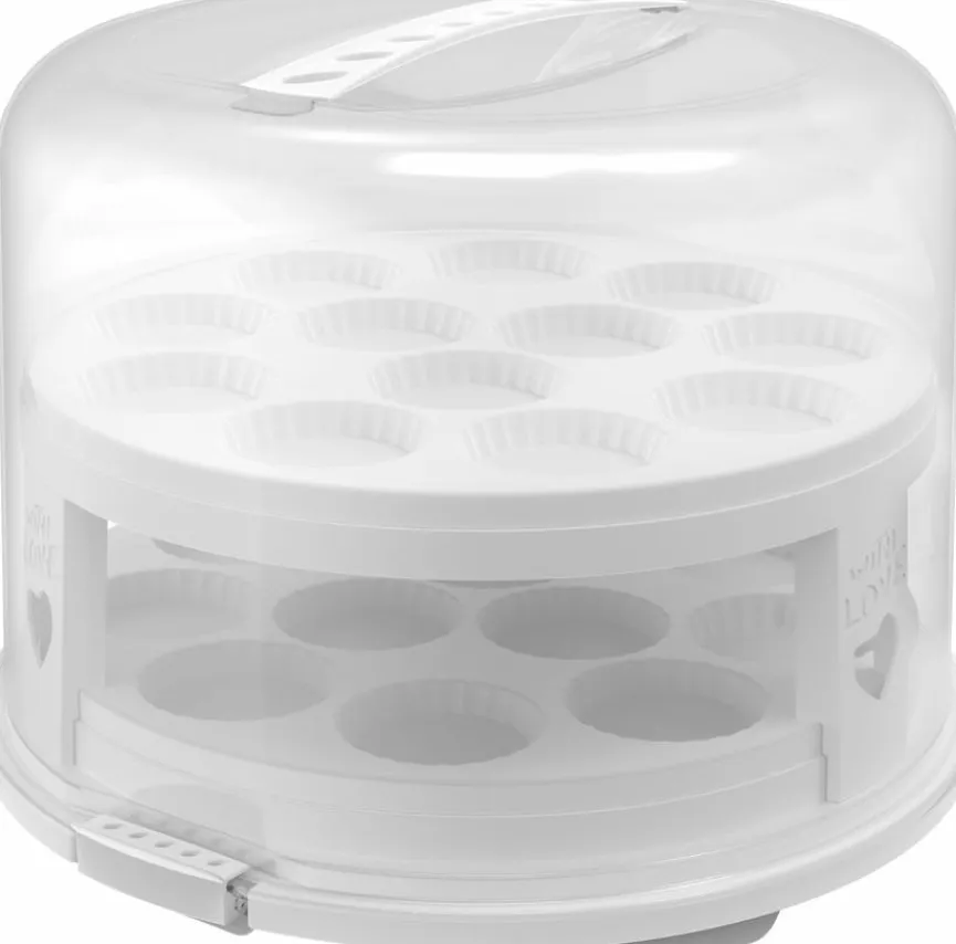 Mit der Tortenglocke Fresh des Herstellers Rotho sind Sie maximal flexibel, was deren Inhalt angeht. So nimmt sie es wahlweise mit einem großen Kuchen, zwei kleinen Kuchen oder auch mit Muffins auf. Die am Boden sichtbare Einteilung hilft Ihnen außerdem, perfekte Stücke zu schneiden. Dank der praktischen Verschlüsse lässt sich Tortenglocke Fresh sicher transportieren und leicht öffnen.