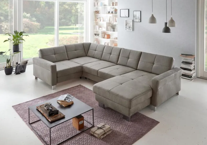 Farbe: GrauMaterial: MikrofaserGröße: Breite: 351,00 cm, Höhe: 89,00 cm, Tiefe: 214,00 cm