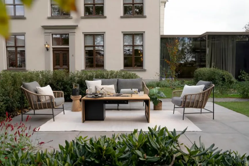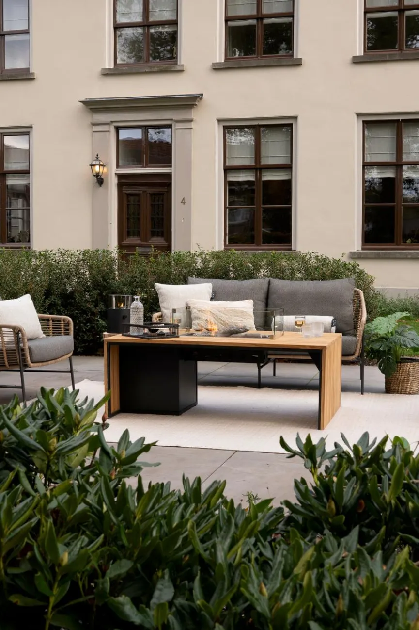 Der Feuertisch Cosibridge 140 verbreitet eine wunderbare Atmosphäre auf jeder Terrasse. Beim sanft flackernden Licht der Flammen lassen sich unvergessliche Abende direkt am offenen Feuer verbringen. Eine mittig in die Tischplatte eingelassene Brennvorrichtung sorgt für Lagerfeuer-Feeling und Kamin-Stimmung im Freien. Auch wenn es später kühl wird, herrscht am Feuertisch Cosibridge 140 während des gemütlichen Beisammenseins noch Wohlfühltemperatur.