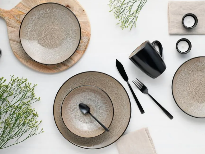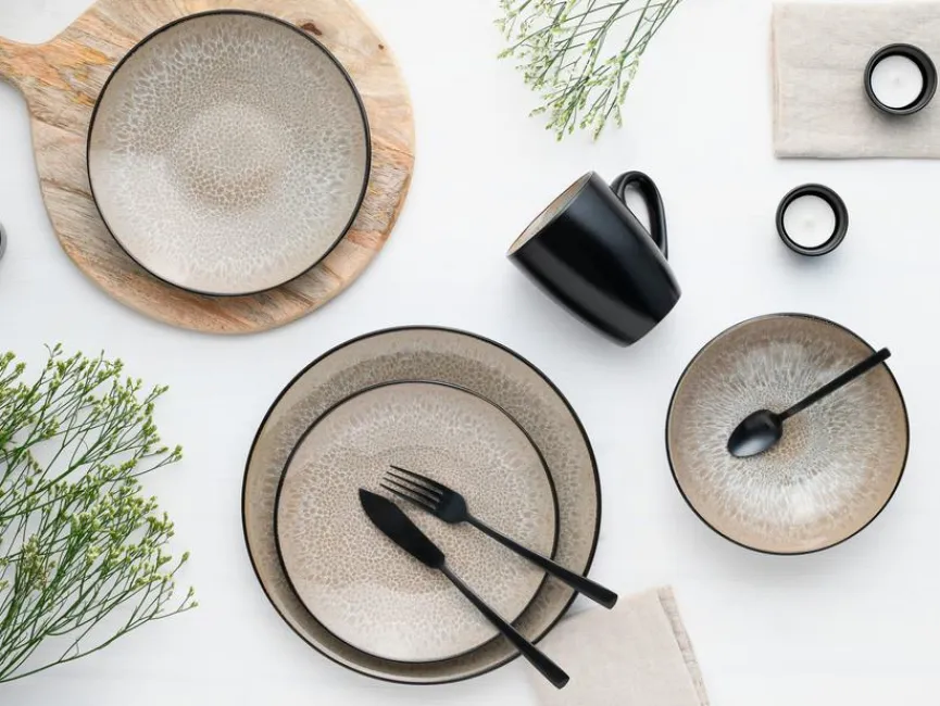 - Je 4 Speiseteller Ø 27 cm, Frühstücksteller Ø 21 cm, Müslischalen Ø 18 cm, Kaffeebecher 300 ml