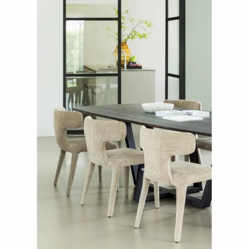 Der Stuhl Permit der Marke DAHEIM besticht mit seinem trendigen Design und dem angenehmen Stoffbezug, wodurch er sich problemlos zu vielen unterschiedlichen Einrichtungsstilen kombinieren lässt. Dank der stützenden Rückenlehne und der weichen Polster lädt er außerdem zum geselligen Beisammensein ein. Kombinieren Sie den Stuhl Permit gerne zu schnörkellosen und modernen Wohnkonzepten, in die er sich mühelos integriert.
