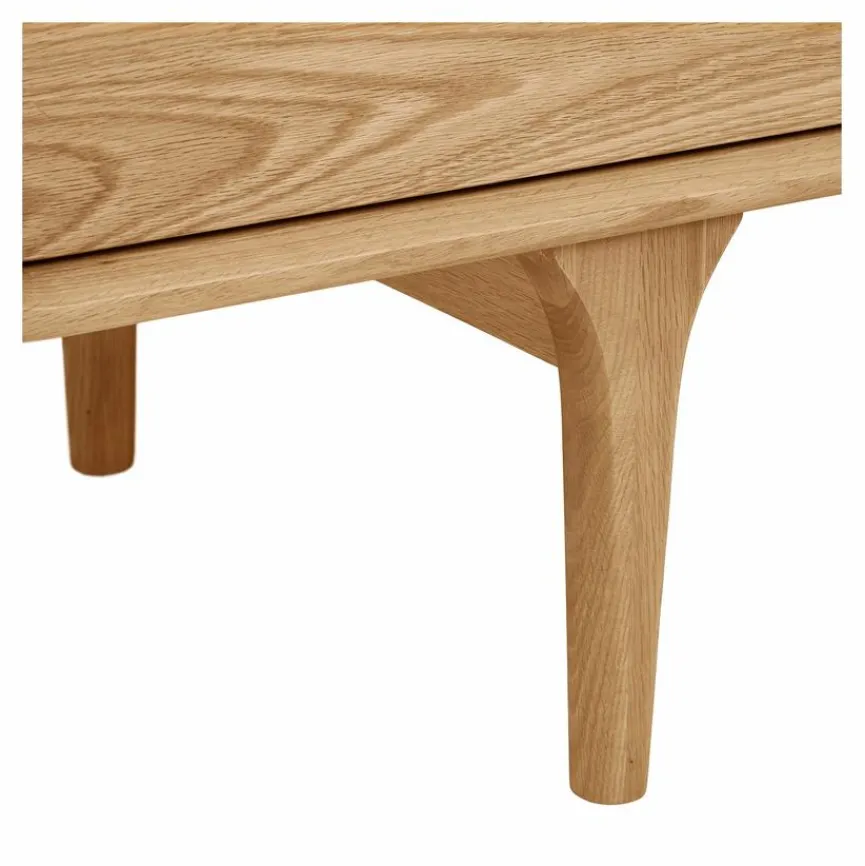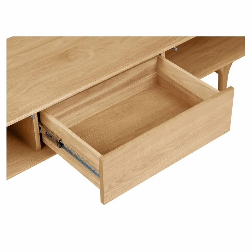 Mit seinen abgerundeten Formen verbreitet das TV-Lowboard Darwin von DAHEIM einen Hauch Nostalgie und erinnert an den Stil der 1950er-Jahre. Dank seiner klaren Formen und des schlichten Looks passt der ästhetische TV-Unterschrank zu jedem modernen Einrichtungsstil. Hinter seinen beiden Türen und in dem Schubkasten in der Mitte bietet das TV-Lowboard Darwin viel Platz für Fernseh-Zubehör, Spiele, Zeitschriften und sonstige Dinge.