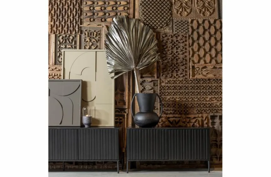 Verleihen Sie mit dem TV-Lowboard New Gravure Ihrem Wohnzimmer Extravaganz und Chic! Schlank gezeichnete Beine und grifflose Türen im grandiosen Relief-Look lassen diesen TV-Unterschrank sehr elegant und gleichzeitig ausgesprochen originell wirken. Kombinieren Sie das TV-Lowboard New Gravure zum Beispiel mit Exotik vermittelnden Möbeln sowie Wohnaccessoires mit Kolonial-Charme!