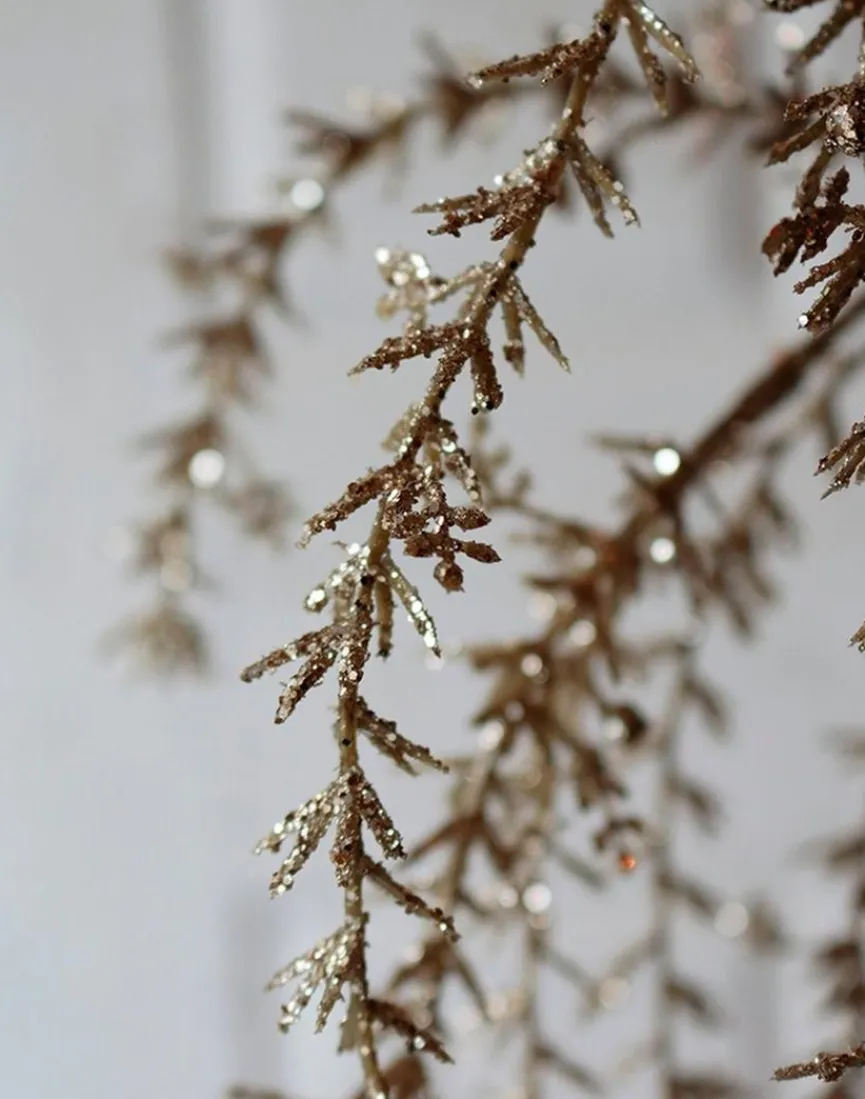 Als effektvoller Schmuck verschönert der künstliche Deko-Hänger Glitter 120 cm Innenräume, er kann bei Bedarf aber auch im Außenbereich eingesetzt werden. Filigrane herunterhängende Äste schaffen eine fließende Bewegung. Solo entfaltet der funkelnde Deko-Hänger Glitter 120 cm seine Wirkung am besten, zum Beispiel als festliches Element in der Weihnachtszeit.