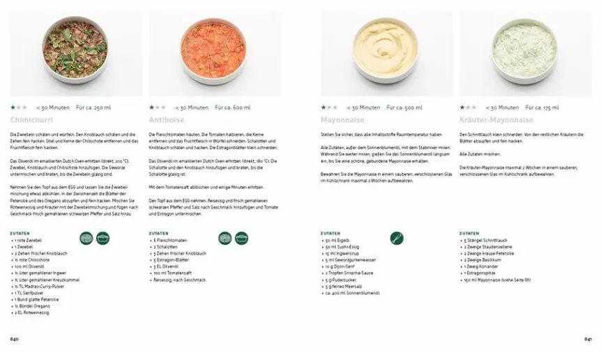 - Jegliche Rezepte für Fisch und Meeresfrüchte, Geflügel und Wild, Fleisch, Gemüse, Brot und Teigwaren, Früchte und Patteserie sowie allerlei Grundrezepte und Inspirationen