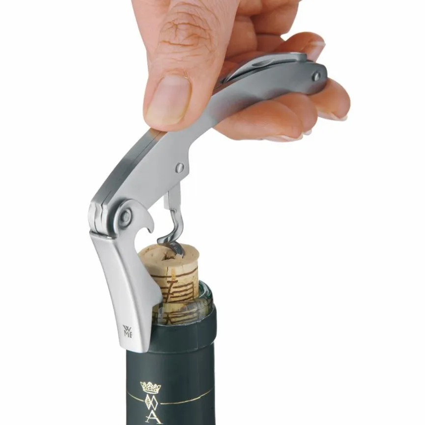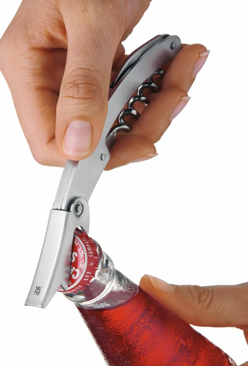Das formschöne und edel gestaltete Kellnermesser Clever & More aus dem Hause WMF ist mit einem Folienschneider und darüber hinaus einem Kapselheber versehen. Mit einem Korkenzieher wartet dieses Tool ebenfalls auf. Dank des Hebelkonzepts eignet sich das Kellnermesser Clever & More auch für Flaschen mit längeren Korken.