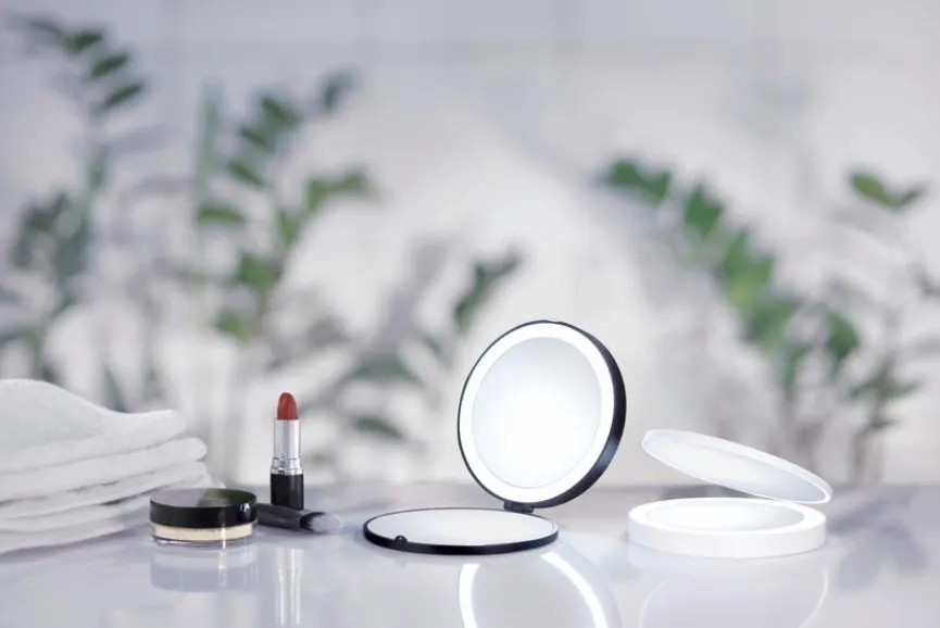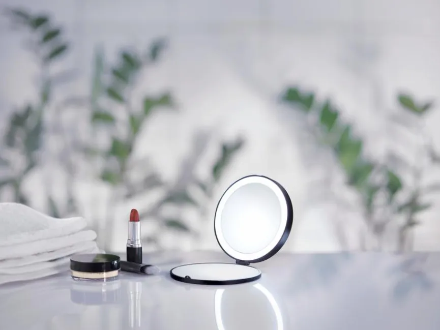 Beim Kosmetikspiegel Reise von Smedbo ist der Name Programm. Er lässt sich nämlich zusammenklappen und ist daher so kompakt, dass Sie ihn mit in den Urlaub nehmen können. Dennoch bietet der Schminkspiegel perfekten Komfort, wie etwa den Vergrößerungsfaktor 7 sowie eine LED-Beleuchtung. Dank des eleganten Designs stellt der Kosmetikspiegel Reise der Marke Smedbo zudem einen tollen Blickfang im Badezimmer dar.