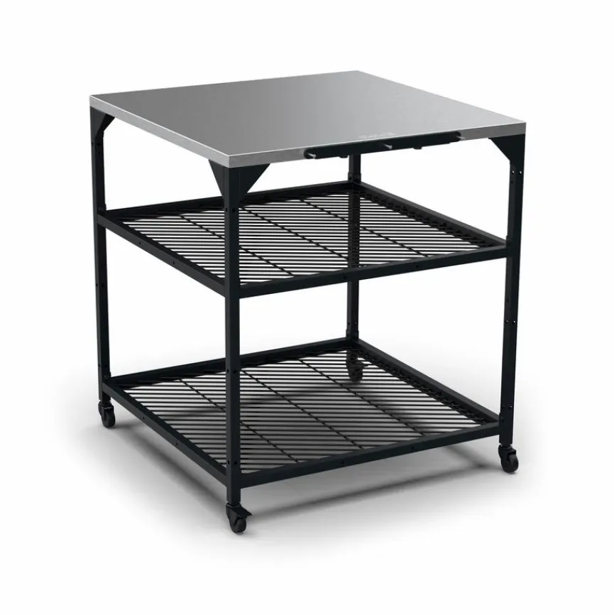 Der durchdacht konzipierte, witterungsbeständige Modultisch Pizzaofen Large von Ooni erleichtert das Zubereiten von leckerer Pizza im Außenbereich erheblich. Dank der feststellbaren Rollen steht der Arbeitstisch während des Teigknetens und Belegens der italienischen Spezialität sicher an seinem Platz. Auch als Standfläche für den Ofen der Marke und anderes Zubehör eignet sich der Modultisch Pizzaofen Large bestens, der übrigens mit weiteren Modultischen kombinierbar ist.