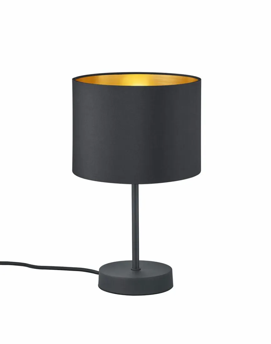 Für ein angenehmes und gemütliches Ambiente in jedem Wohnbereich sorgt die elegante Tischleuchte Hostel aus dem Hause Trio. Die dunkle Tischlampe präsentiert sich mit einem zylinderförmigen Schirm, der in seiner tollen Kombination aus Schwarz und Gold besticht. In ihrem zeitlosen Design sorgt die Tischleuchte Hostel von Trio für ein weiches und sanftes Licht zum Wohlfühlen.