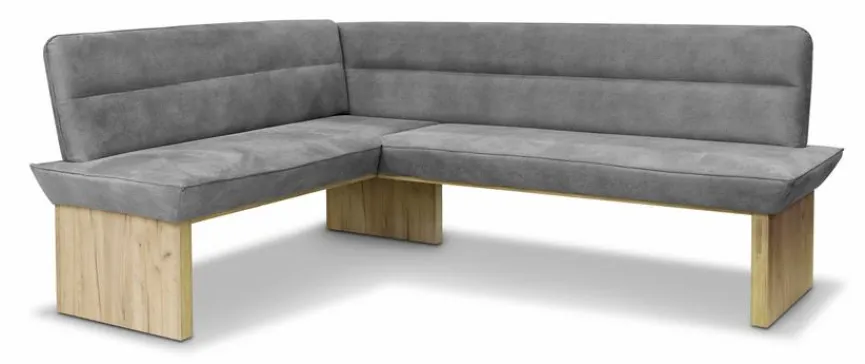 Mit der Eckbank Beluna setzen Sie einen dezenten Vintageakzent und sorgen für stilvolle Gemütlichkeit im Esszimmer. Das Gestell dieses Sitzmöbels, das schön zu einem eckigen, schlicht gehaltenen Tisch passt, wartet mit Eiche-Dekor auf. Für den Sitzkomfort ist bei der Eckbank Beluna eine Wellenunterfederung verantwortlich.