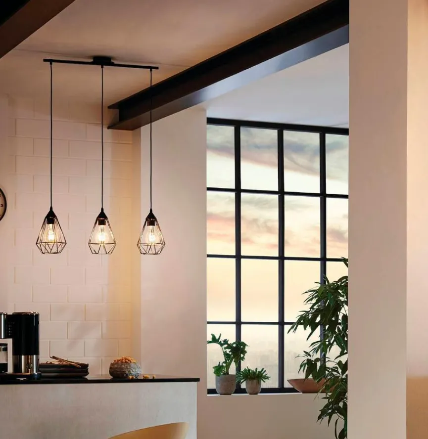 Die Pendelleuchte Tarbes von EGLO punktet durch das augenfällige Design der Lampenschirme und passt harmonisch zu verschiedenen Einrichtungsstilen. Durch die geometrische Schirmstruktur setzen Sie besondere Akzente und erfreuen das Auge des Betrachters der Pendellampe aus dem Hause EGLO mit interessanten Licht- und Schatteneffekten. Gefallen kann die Pendelleuchte Tarbes zudem dank ihrer filigranen Formgebung des Korpus.