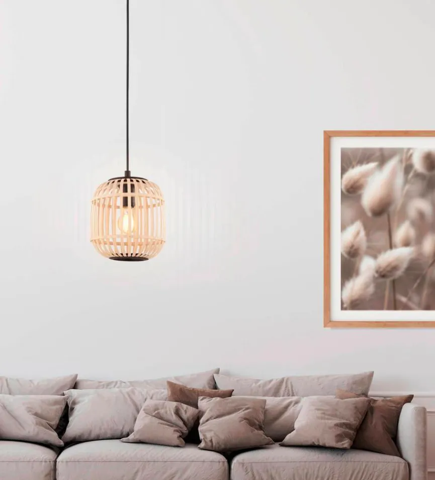 Die attraktive Pendelleuchte Bordesley aus dem Hause EGLO gefällt mit ihrem leichten Retrocharme. Grund für diese nostalgische Wirkung ist der Holzschirm der Pendellampe. Dank des korbähnlichen Schirmdesigns entfaltet die Pendelleuchte Bordesley von EGLO zudem ein interessantes Licht- und Schattenspiel, wodurch sie einen reizvollen optischen Akzent setzt.