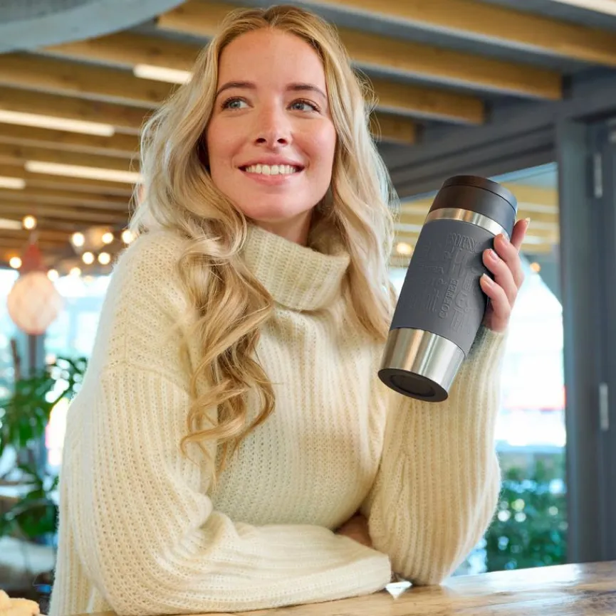 Der auslaufsichere Isolierbecher Travel Mug Classic 500 ml von emsa sorgt dafür, dass Sie auch unterwegs leckere heiße oder auch kalte Getränke genießen können. Dank der 360°-Rundum-Trinköffnung lässt sich der Rand des robusten Thermobechers von jeder Seite zum Trinken nutzen. Ein praktischer Quick-Press-Verschluss ermöglicht es Ihnen, den Isolierbecher Travel Mug Classic 500 ml bequem mit nur einer Hand zu öffnen.