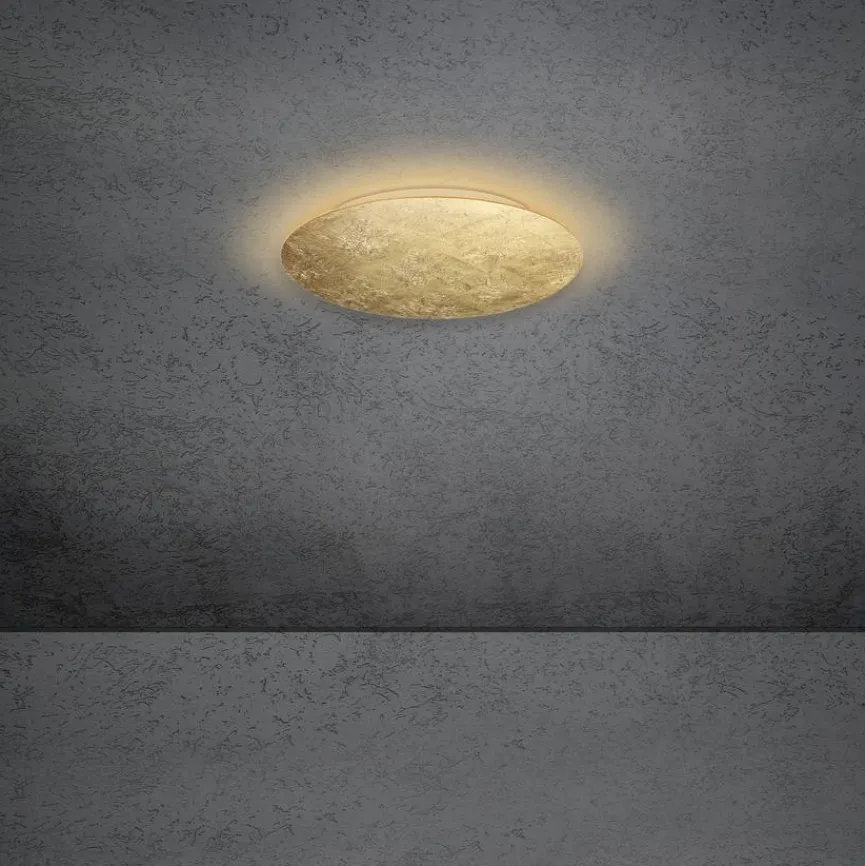 Mit ihrer Oberfläche aus Blattgold wird die LED-Deckenleuchte Blade des Herstellers Escale zum wahren Blickfang. Außerdem sorgt die LED-Deckenlampe in Ihren Räumlichkeiten für eine gleichmäßige Ausleuchtung mit warmweißem Licht. Die LED-Deckenleuchte Blade lässt sich einfach montieren und eignet sich alternativ auch als Wandleuchte.