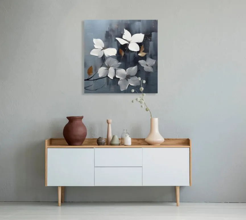 EUROART Bilder Ohne Rahmen|Wandbild 50 x 50 cm White Flowers On Silver VIII