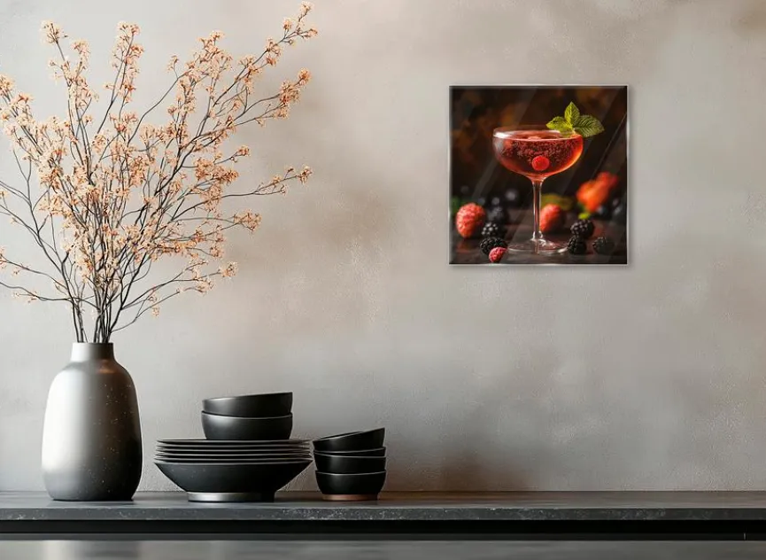 Das Glasbild 20×20 cm Colourful Cocktails V von EUROART begeistert mit kräftigen Farben und prickelndem Motiv. Mit diesem Deko Bild sorgen Sie für einen echten Blickfang in Ihrer Küche oder Ihrer Hausbar. Durch die Darstellung eines fruchtigen Cocktails mit Beeren und Minze bringt das Glasbild 20×20 cm Colourful Cocktails V spritzige Eleganz an Ihre Wand, perfekt für ein belebendes Ambiente.