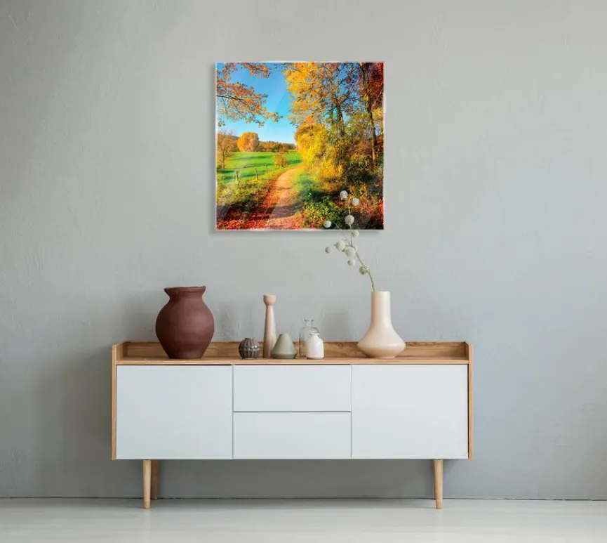 Mit dem Glasbild 50×50 cm Sunny Autumn V von EUROART bringen Sie kraftvolles, frisches Flair in Ihr Zuhause. Dieses Bild begeistert mit seinem herbstlichen Ausblick und den warmen Farben. Das Glasbild 50×50 cm Sunny Autumn V setzt in jedem Raum einen inspirierenden Akzent und macht Lust auf Wanderungen in der Natur.