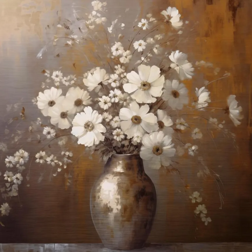 EUROART Wandbild 50 x 50 cm White Flowers On Gold II
